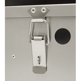 Stainless steel professional small box low-voltage 150-watt transformer. Four taps on DIN rail for 12- to 15-volt output. One common tap. 92 to 95% regulation. Highly efficient. Photocell plug, amp loop, and timer socket. 12.5-amp breaker. Removable hinged door. Lifetime warranty.