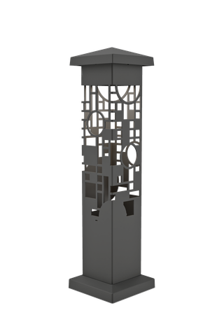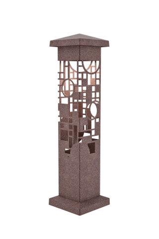 The Nightscaping® Estate Series 6×6 Wright GEO light bollard design, is based on a Frank Lloyd Wright, stained glass design of three panels in the Avery Coonley Playhouse in Riverside, IL. Composed of brightly colored geometric motifs, these windows suggest balloons, confetti, and flags possibly representing a parade. Frank Lloyd Wright referred to this prominent architectural element as a “kinder symphony”. The windows were the focal point of the playhouse, which was actually a kindergarten operated by Mrs. Coonley.
