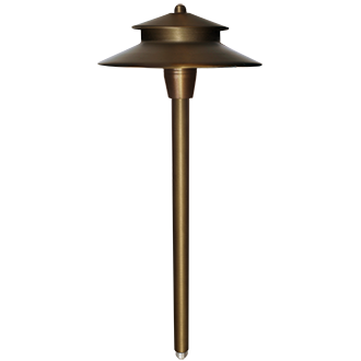 The Andros path light features an 8.5” diameter cast brass hat. Its underside is a powder-coated reflective white surface. Polycarbonate clear lens. Lifetime warranty.