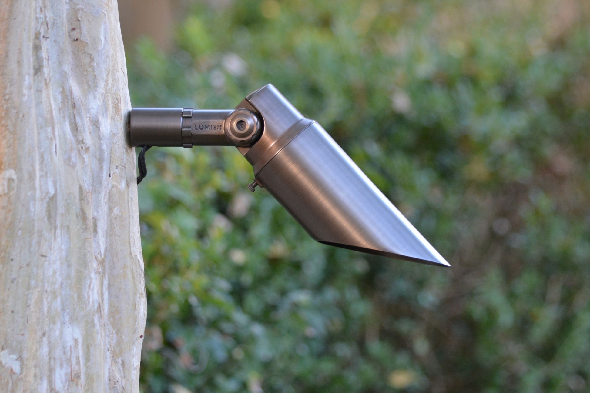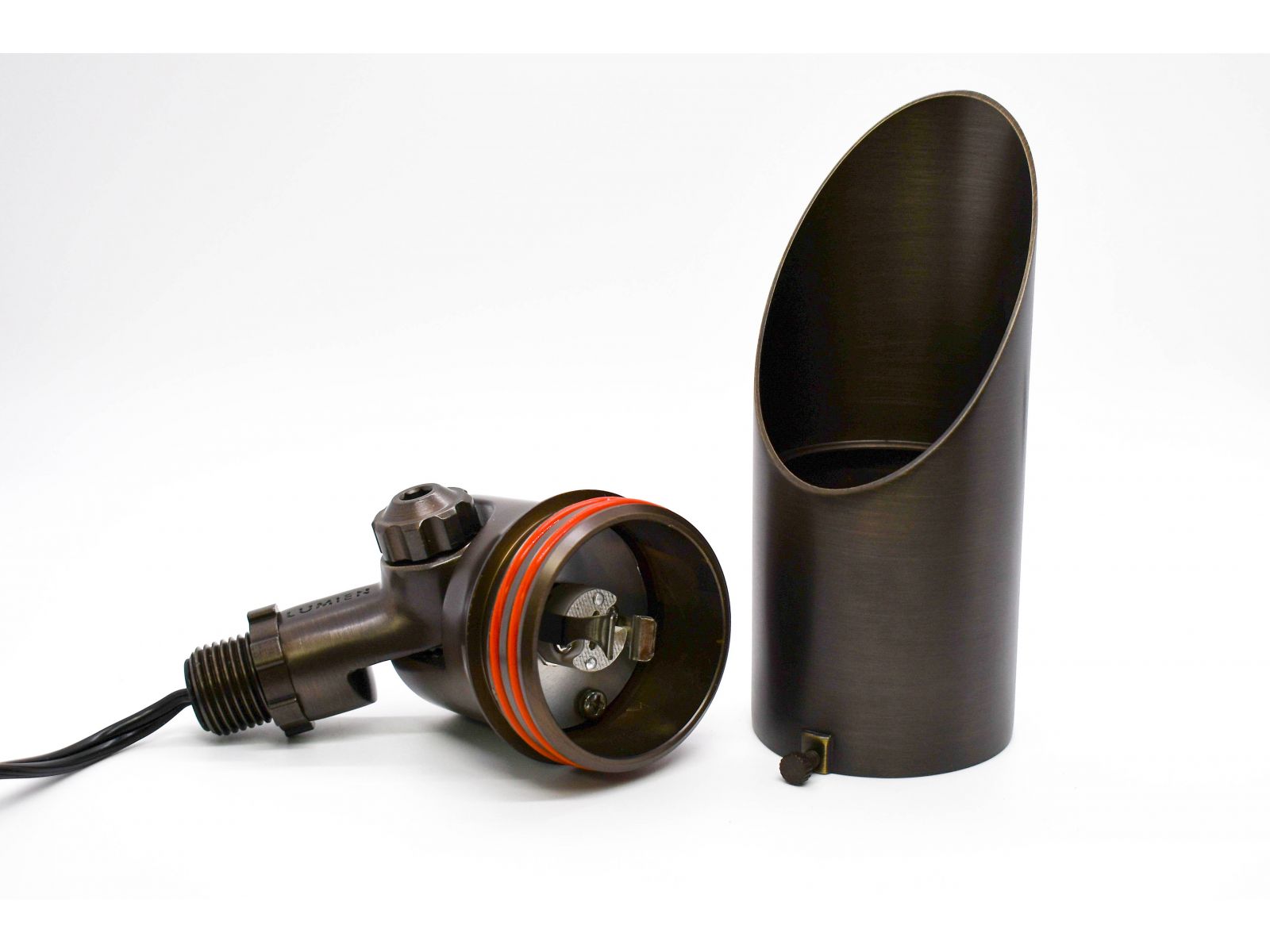Brass Spot Light, Drop-In MR16 (No Lamp Included), Down Light Shroud - Deep Cut, 30ft Lead, Includes LA026 - Single Point Tree Mount