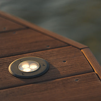 The Chelsea weathered brass well light has a tempered glass lens, gasketed shroud, and durable composite body. 5-foot 18/2 wire lead. 1 lb. H5 Hex, need 3mm Hex tool for installation.
