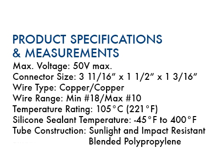 • Strain resistant tube is pre-filled with dielectric silicone sealant that never hardens