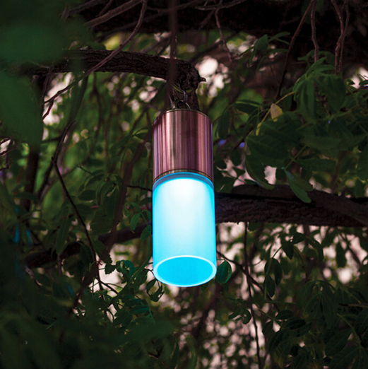 The Glacier Hanging Down Light works with MR16 lamps or MR16 Chameleon lamps. It features a frosted shade perfect for projecting soft RGBW light.