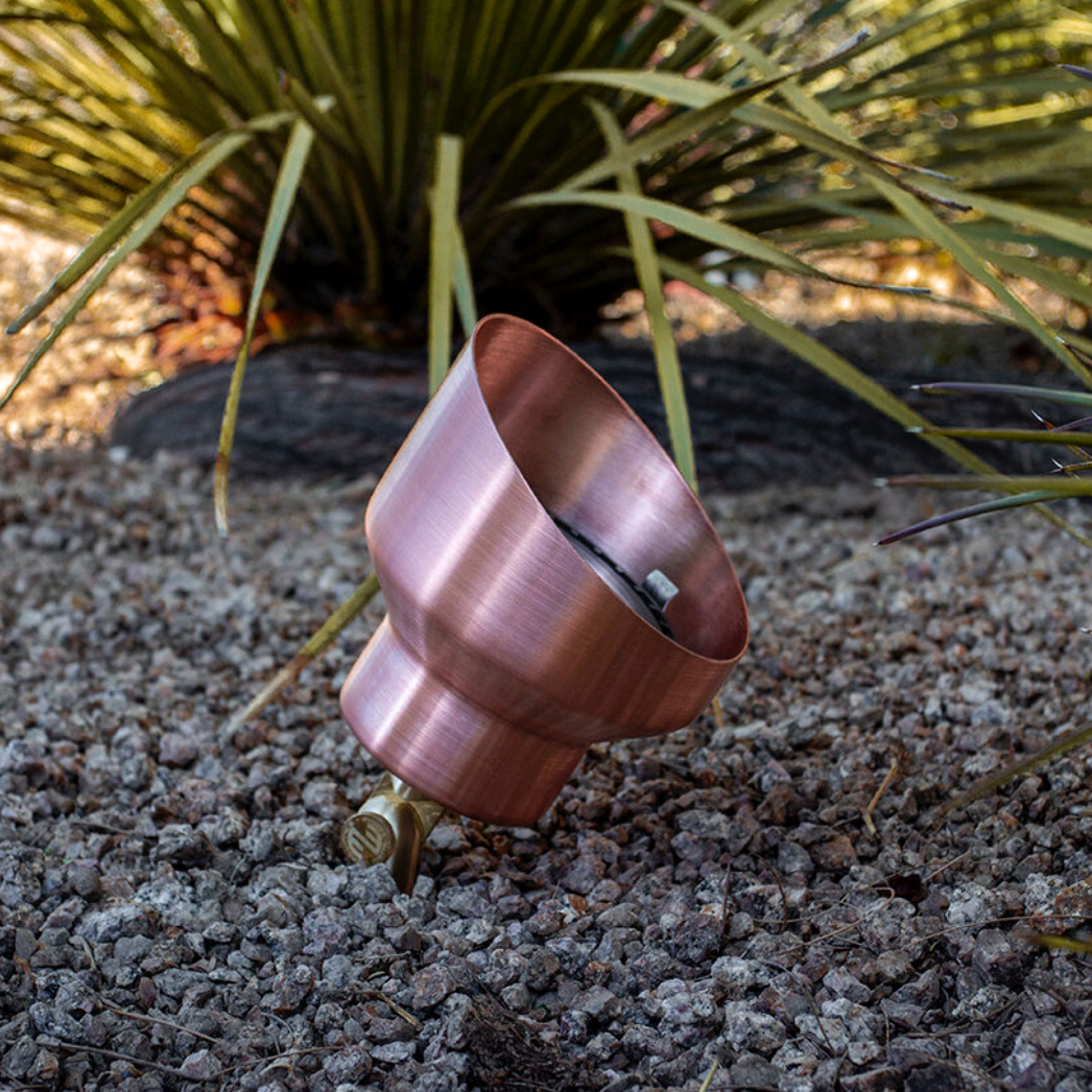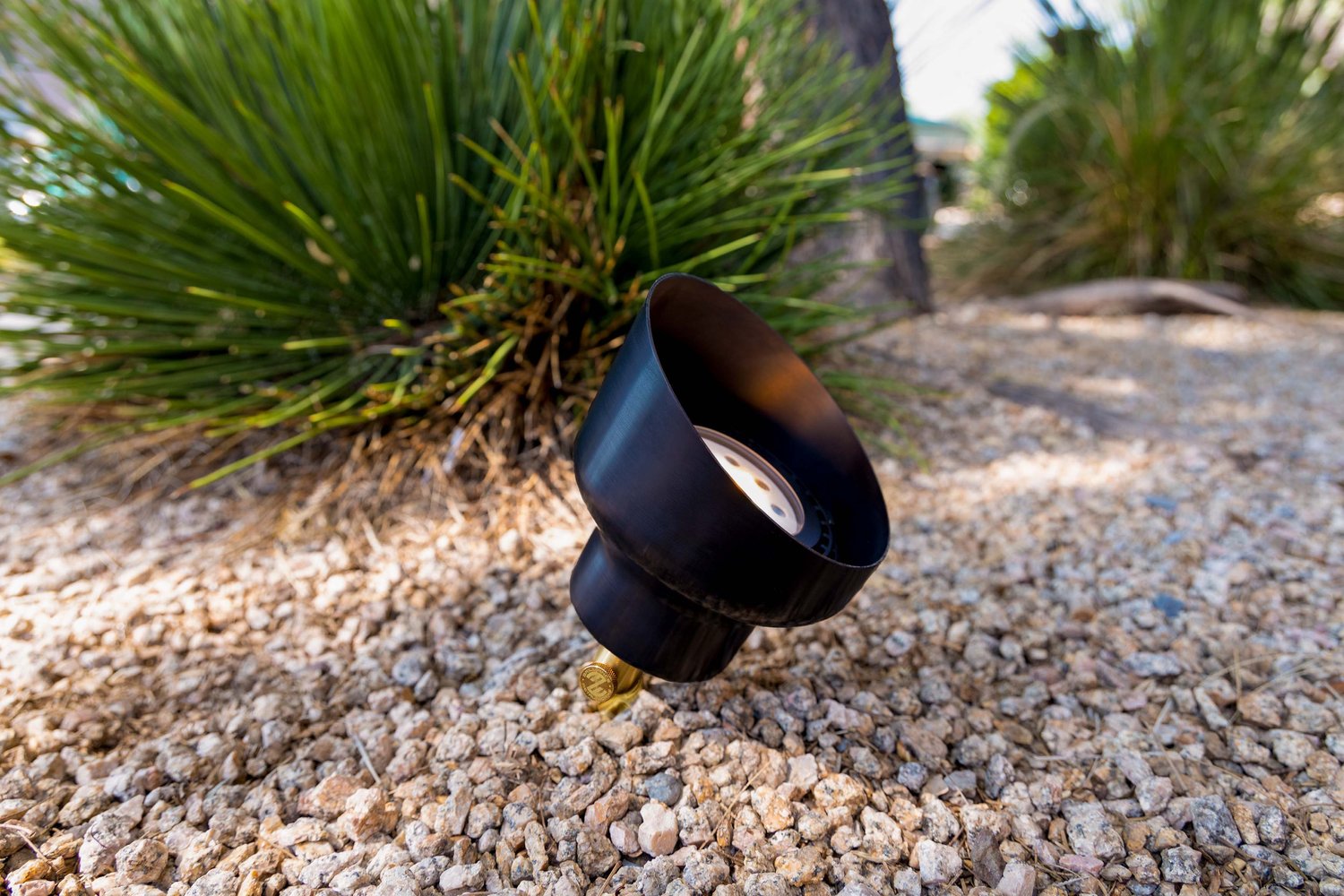 The Grand Canyon Directional Light works with PAR36 lamps or PAR36 Chameleon lamps. It features an adjustable glare shield and the Brilliance Metal Works signature adjustment system, which allows for 22 points of articulation of the knuckle in 10 degree increments. For loose soil applications, pair the Grand Canyon with the Impaler accessory.