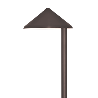 The Lotus cast aluminum path light has an enclosed socket, 6-inch diameter hat, reflective powder-coat interior, 20.5-inch stem and a five-year warranty.