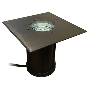 The Wentworth well light with a large square 6.5-inch faceplate can replace a standard driveway paver. Features an adjustable lamp gimbal for precise light direction. Faceplate is weathered brass, lens is tempered glass, and body is durable composite. Uses MR16 lamp. 5-foot 18/2 pigtail. H5 Hex, need 3mm Hex tool for installation.